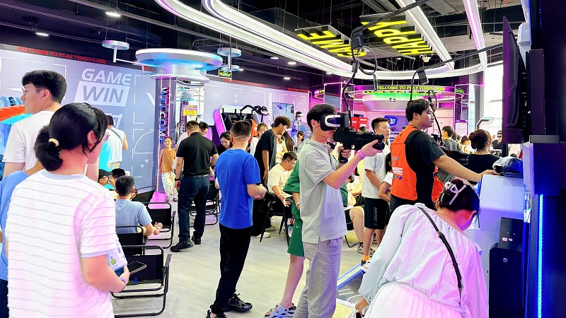其中,二樓打造的“動感競技場”,可讓消費者體驗保齡球精準碰撞的樂趣,在“槍王對決”和“實彈射擊”中感受腎上腺素飆升,挑戰(zhàn)“滑索”的速度與“射箭”的專注,暢玩Switch2/PS5主機游戲,或在“炫動單車”“金剛戰(zhàn)士”“巔峰狙擊”中釋放活力,更可在“落日休憩區(qū)”憑欄觀海,動靜皆宜;三樓打造了“科技社交匯”,讓消費者步入VR館即可開啟奇幻冒險,通過“宇宙一號”“傘途”“雙人360”“樂享滑雪”等7大尖端設備穿梭虛實之境。同時,“聲控派對”“開放式舞臺”點燃社交熱情,桌游、麻將、碰碰車、臺球、飛鏢、模擬網(wǎng)球、“悅動格子”“360°單車”等豐富選擇滿足不同興趣群體,更有私密“轟趴房”和舒適“太空艙”提供專屬聚會與休憩空間。